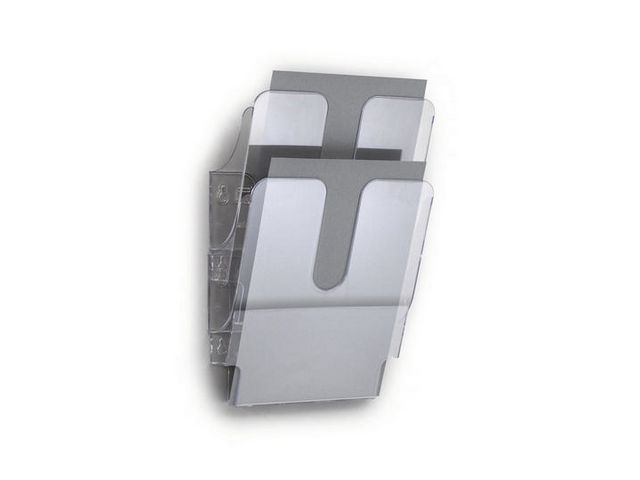 Organisera mappar, tidskrifter eller dokument i snygg väggdisplay. Praktiska fack som rymmer broschyrer, tidningar eller blanketter i A4 stående format upp till 23mm tjocka buntar. Bygg ut efter behov genom att haka i facken efter varandra. Går även att använda som singelfack. Facken skruvas upp på väggen, skruv medföljer. Mått ihopmonterat 2-fack (HxBxD): 360x250x100mm.