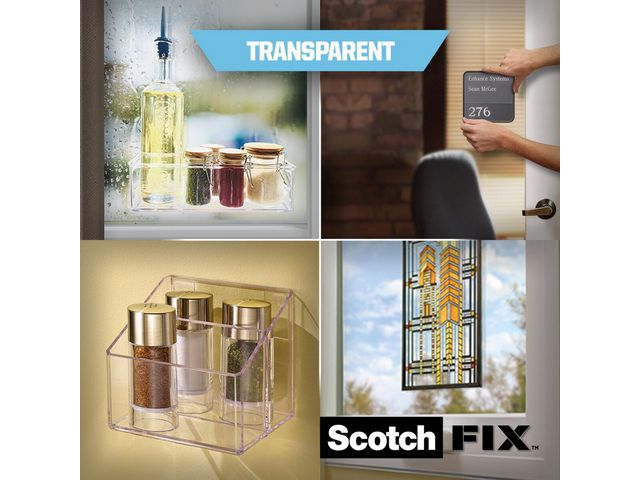 Scotch-Fix Transparent monteringstejp med 3M avancerade teknik. Denna osynliga tejp håller föremål som väger upp till 7 kg och kan användas inomhus och är perfekt för glas, kakel, akryl och metall.