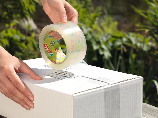 tesapack ecoLogo Eco & Strong är en miljövänlig packtejp gjord av 100 % återvunnen plast. tesa Eco & Strong förseglingstejp har ett klister utan lösningsmedel som passar utmärkt för säker inslagning av paket och försegling av lådor och kuvert. Denna mer miljövänliga förpackningstejp är tillverkad av 100% återvunnen plast med en inre kärna tillverkad av 100% återvunnen kartong. Klistret framställs utan användning av farliga lösningsmedel. Denna starka och tåliga förpackningstejp i polypropylen rivs enkelt bort från rullen med ett lågt ljud vilket minimerar ljudnivån på arbetsplatsen. Lång livslängd tack vare hög UV-beständighet. - Mått: 50mm x 66m - Färg: klar - Tjocklek (mikroner): 56